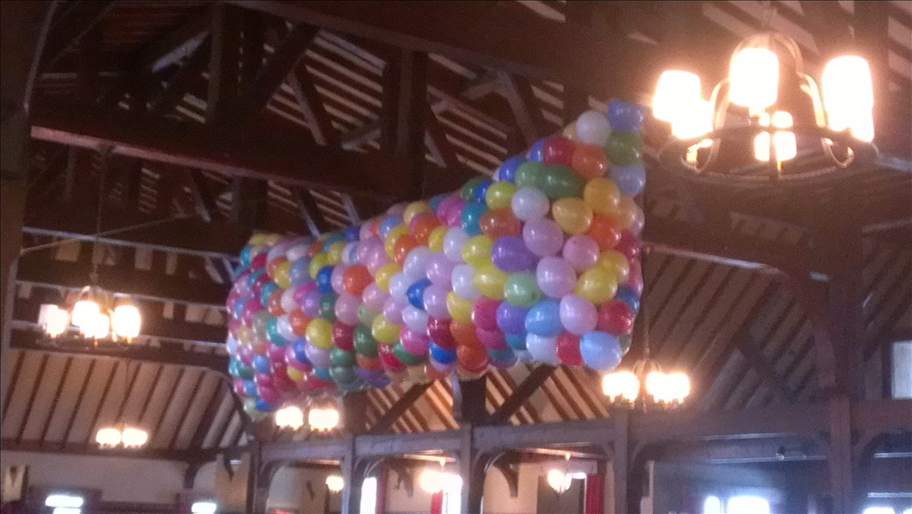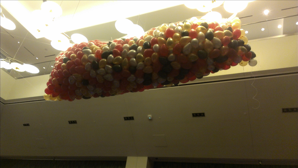 Balloon drops are latex balloons in a nylon netting sized to the area and quantity for the drop. The air-filled balloons are rigged, so that a cord is pulled in the balloons drop out of the net. We have a minimum order of 200 qty balloons for the drops to work correctly. Everything is done for you, so it's ready to pull.
